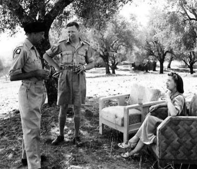 Vernon’s diary entry continues and explains that once the troops knew of the Formby’s arrival in Reggio, the liaison officer delivered a letter from G2 TAC Army H.Q. saying that 8th Army Commander would like George to perform at his HQ, followed by lunch. Here is a photo of General Montgomery meeting the Formby’s, presumably after this event near Reggio.